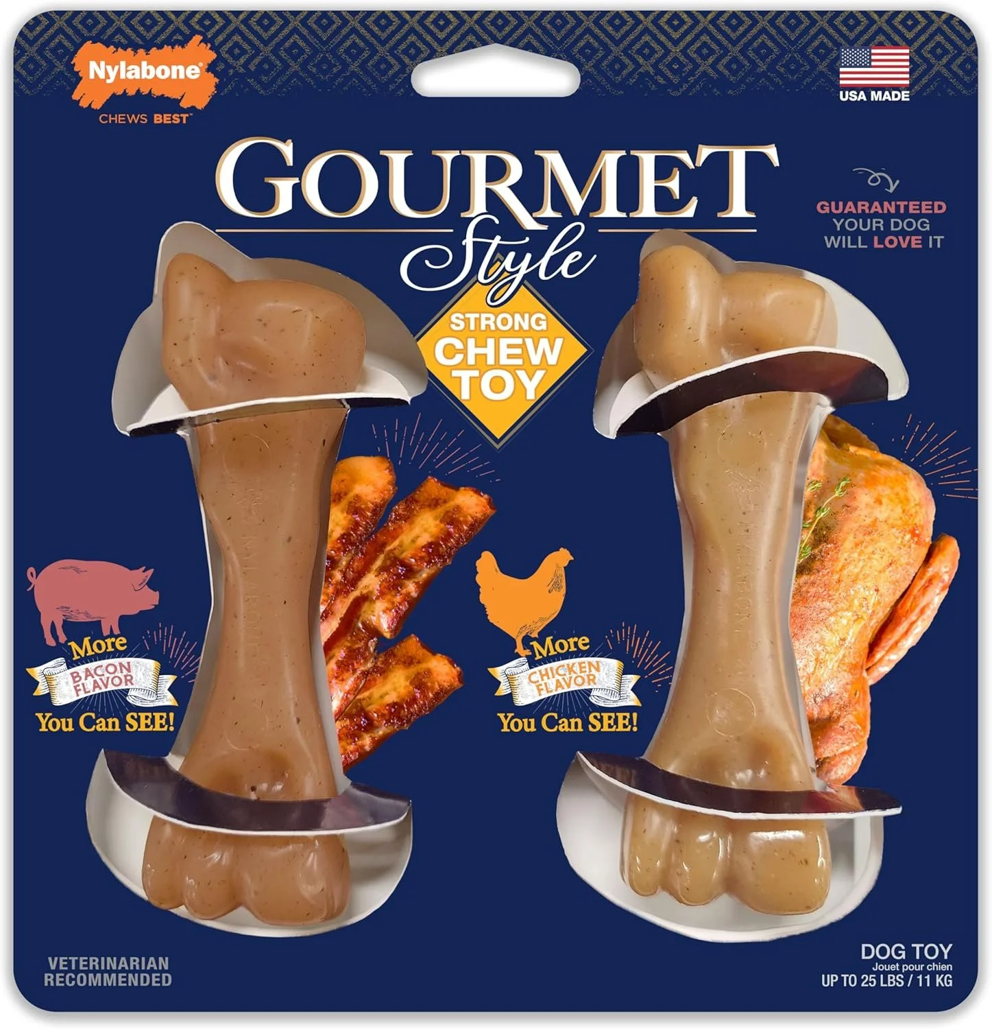 Kong toys are long lasting, durable and they offer various surfaces, densities and flavored fillers for variety. The puppy toys, that are softer, are perfect for their teething needs. The harder, and more dense products, are meant for serious hard-core chewers. Kong even makes toys specifically designed for elderly dogs as well!